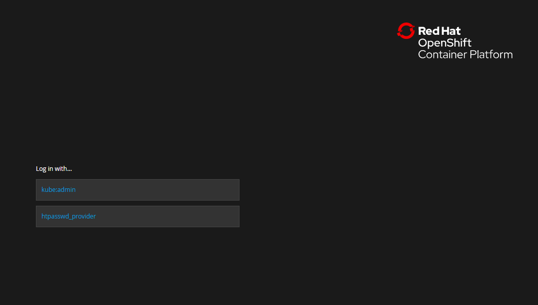 kubeadminユーザでログインするときは、 kube:admin を、developerユーザでログインするときは、 htpasswd_provider を選択する。