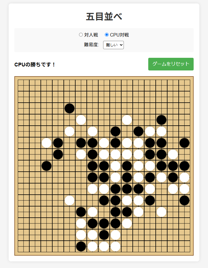 この改良により、CPUはより賢く、特に相手の4連を作らせないように戦略的に石を置くようになります。「難しい」モードではかなり